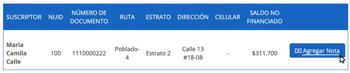 - Utiliza el buscador para encontrar al suscriptor por nombre, número de documento o NUID.