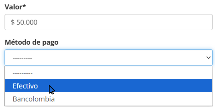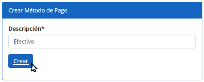 - En el campo Descripción*, escribe el nombre del método de pago (por ejemplo: Efectivo, Transferencia, etc.).