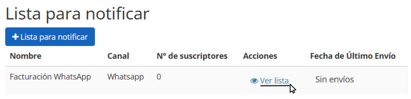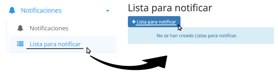 - Haz clic en el botón +Lista para notificar, para crear una nueva lista.